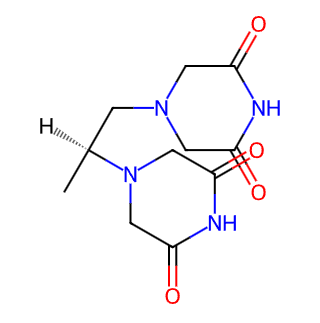 Dexrazoxane is a cardioprotectant and a lipophilic derivative of the chelating agent ethylenediaminetetraacetic acid (EDTA). It readily penetrates cell membranes and is converted intracellularly into an open-ring chelator that interferes with the formation of iron-mediated free radicals, which is partially responsible for the cardiotoxicity of anthracycline antibiotics.